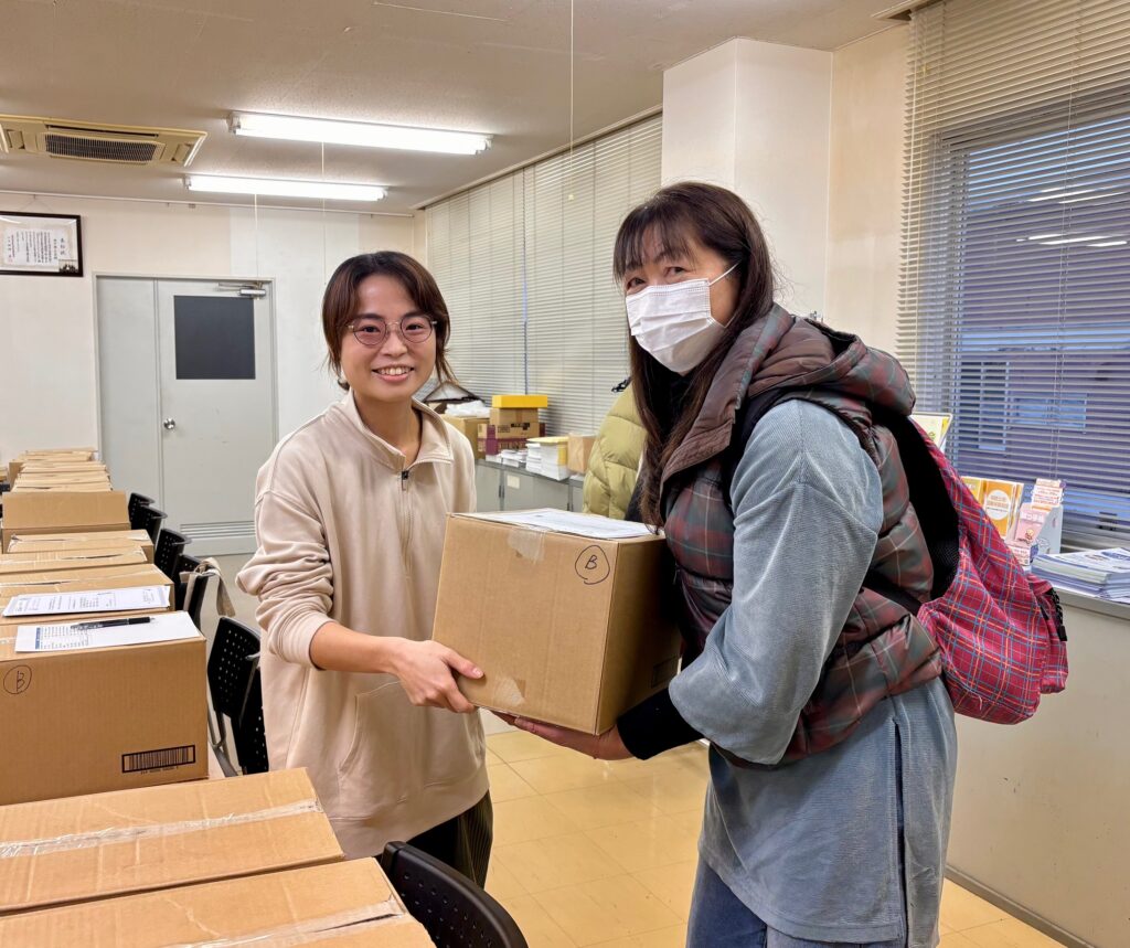 県内企業のサトウ食品株式会社より認定 NPO 法人全国こども食堂支援センター・むすびえを通じて約 2,500kg もの切り餅の提供があり、にこねっとが窓口となり県内で活動するこども食堂や子どもの食支援を行う団体へ届けました。