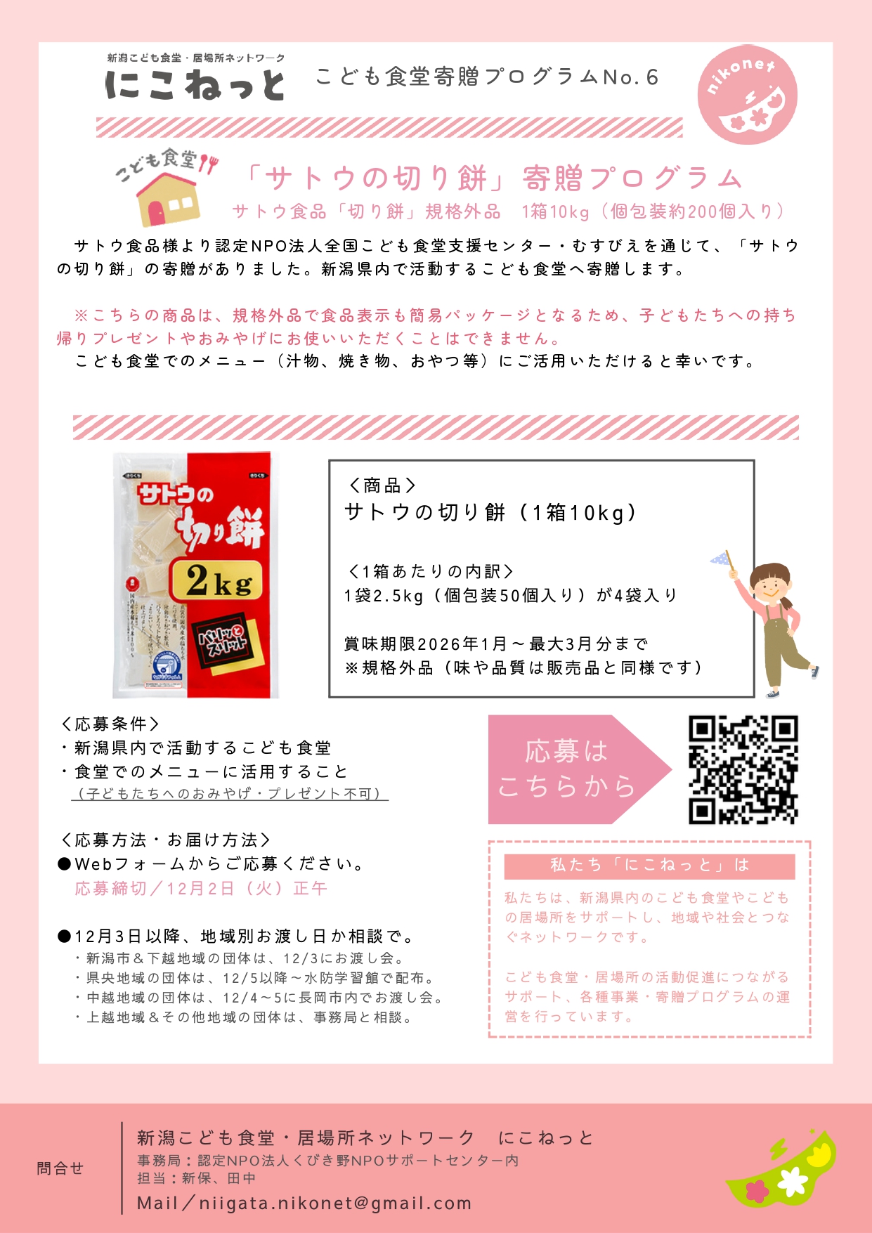 【12/2〆切】「食品寄贈プログラム~サトウの切り餅~」のお知らせ