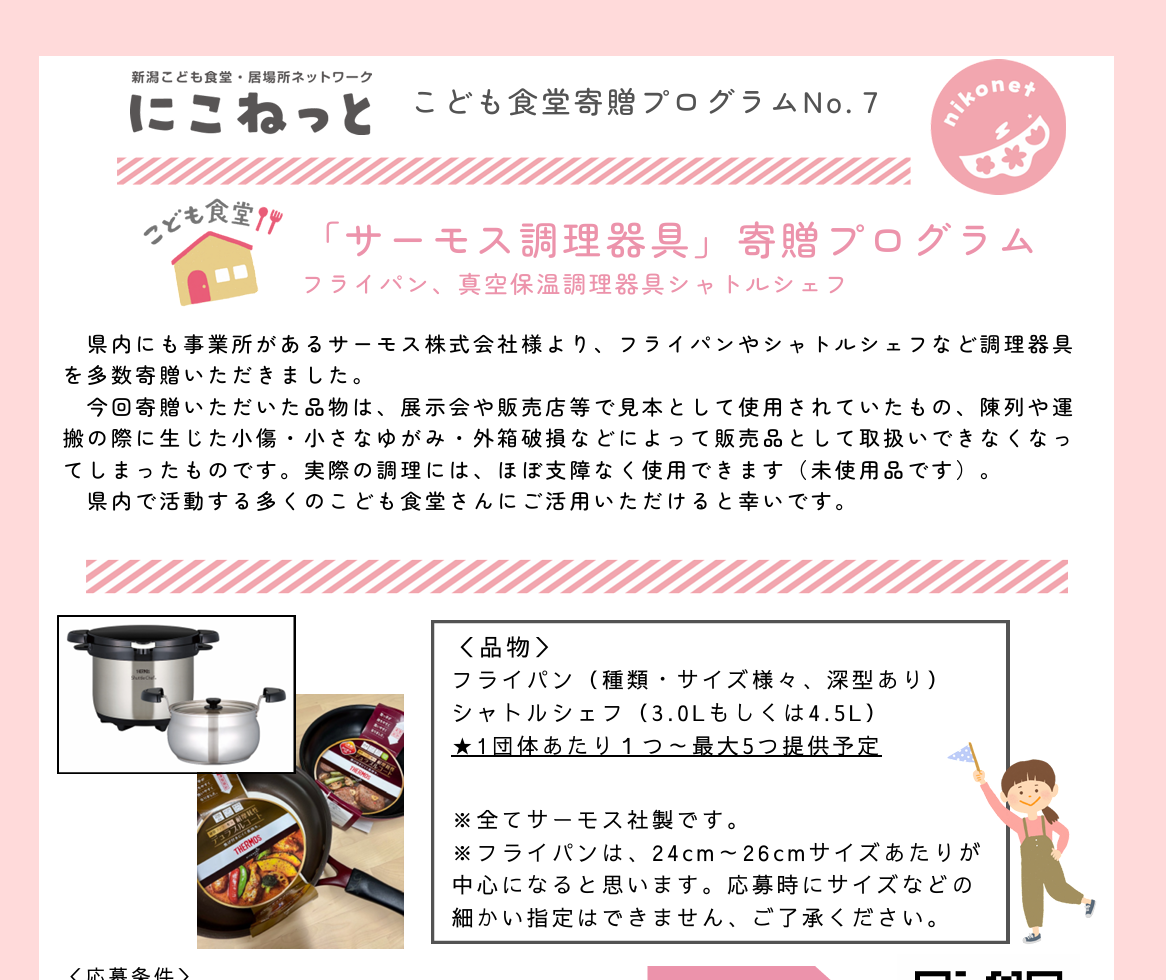 【2/11〆切】「寄贈プログラム~サーモス調理器具~」のお知らせ